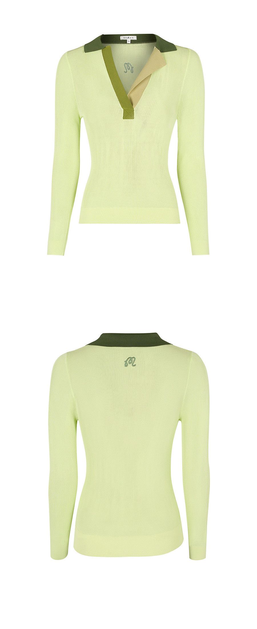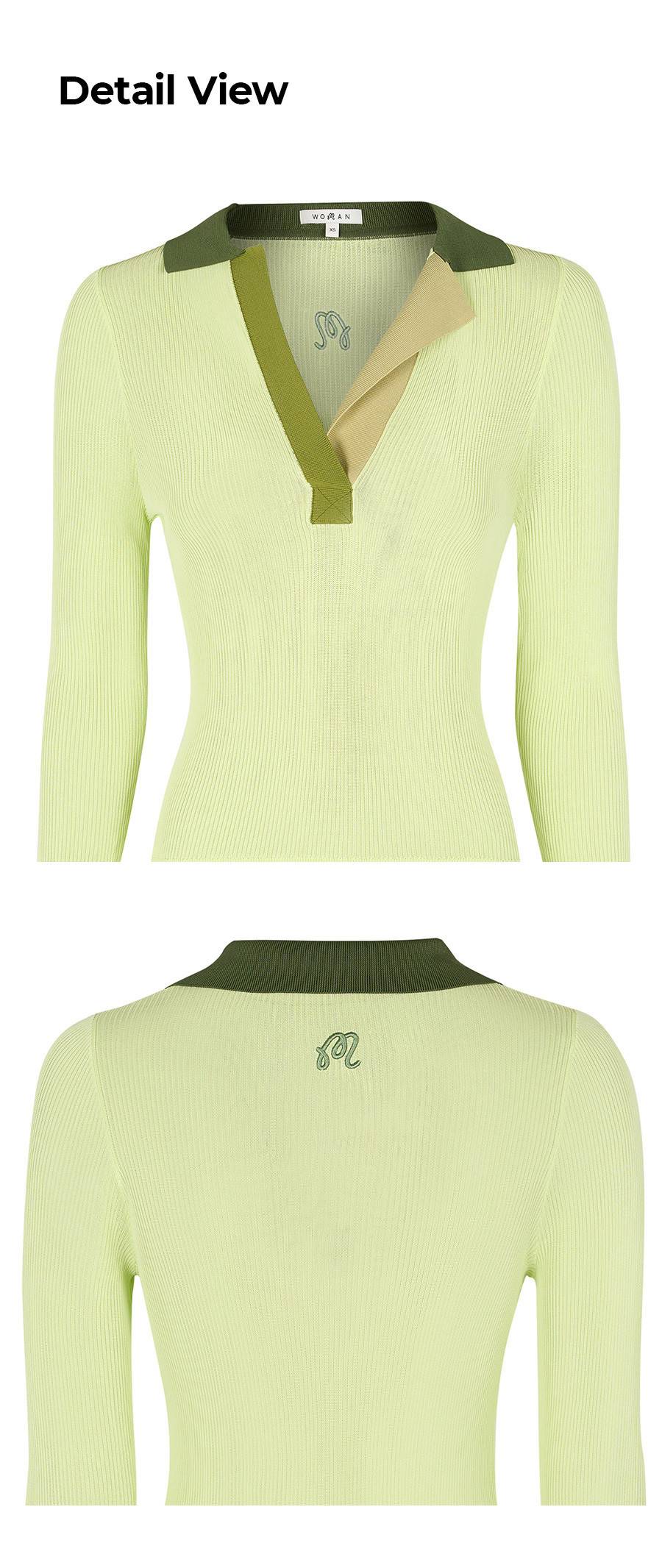 【 MALBON 】女款合身V領POLO衫 萊姆綠