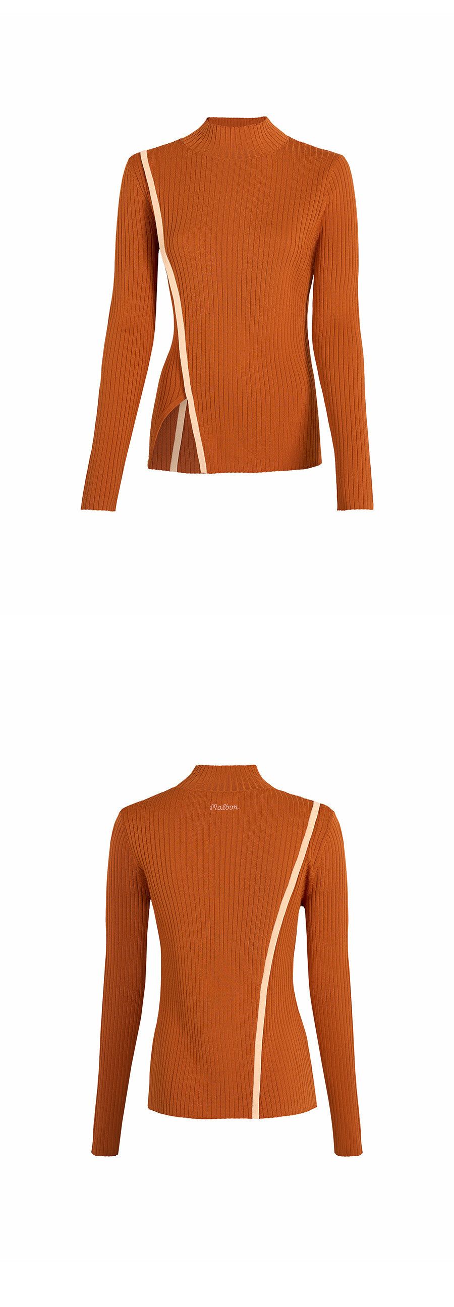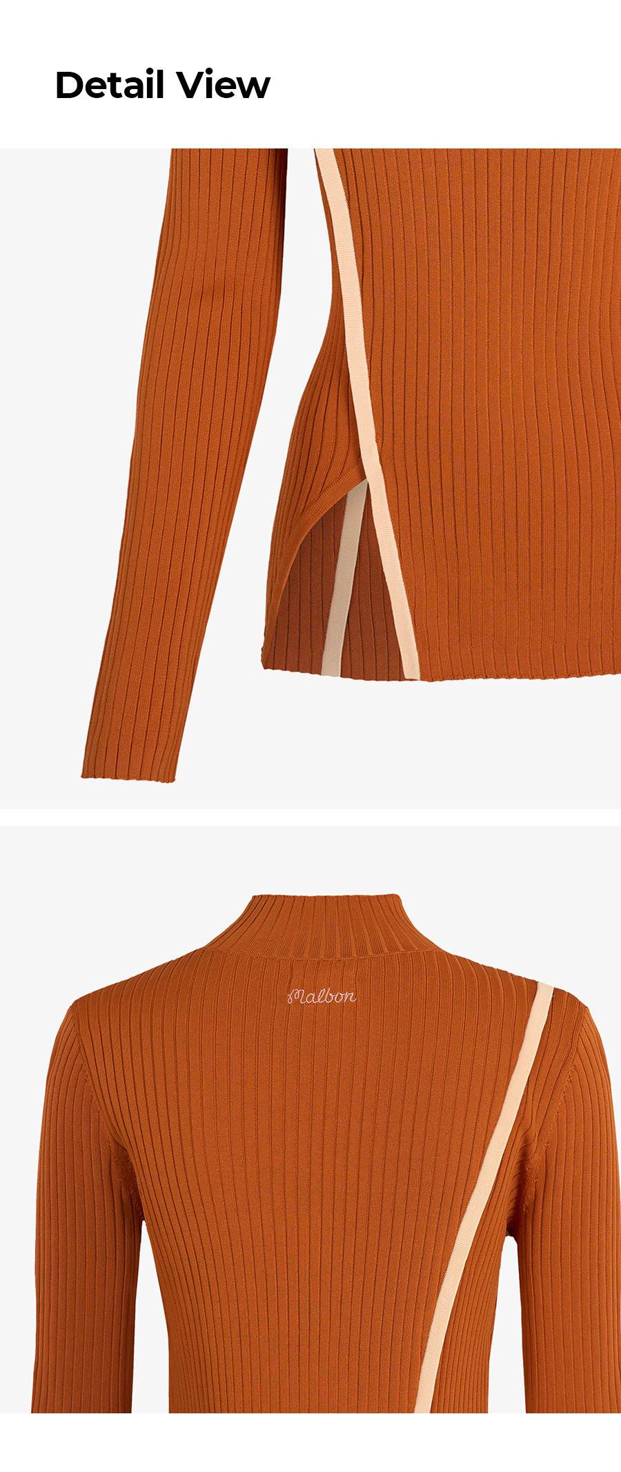 【 MALBON 】女款開衩高領針織衫 棕色