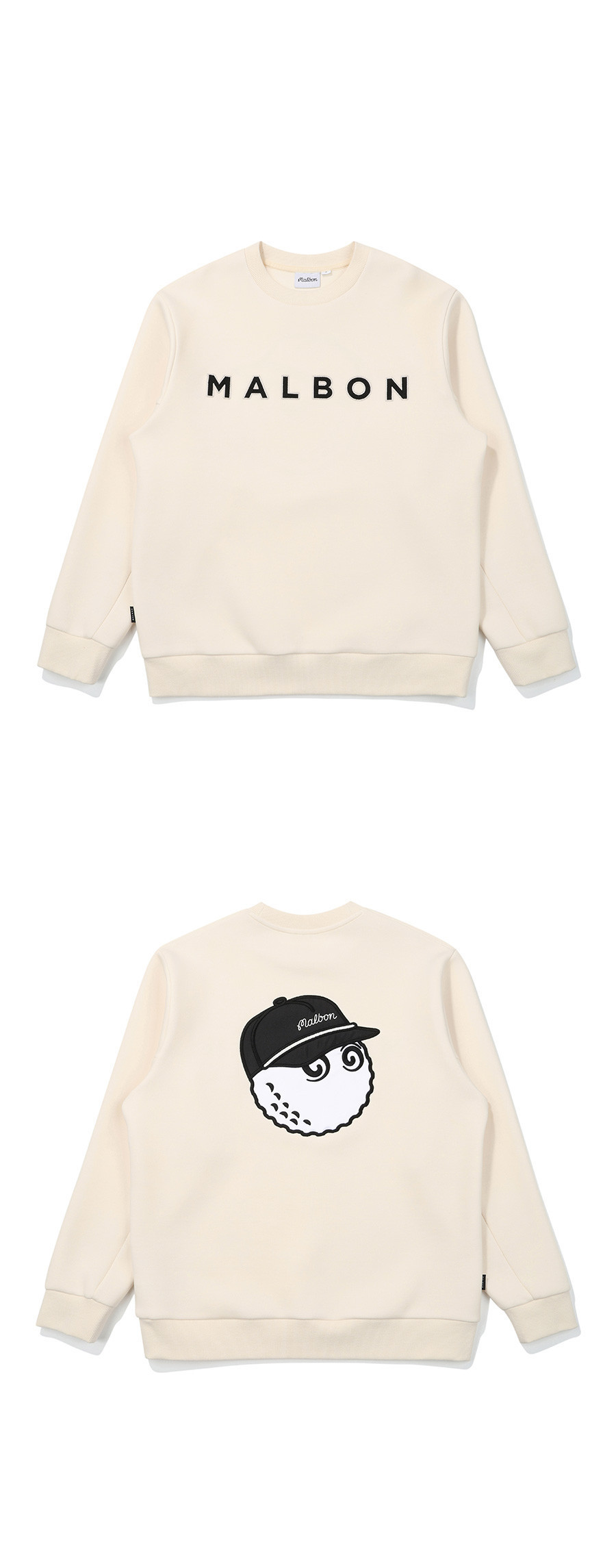 【 MALBON 】男款刺繡大學T 白色