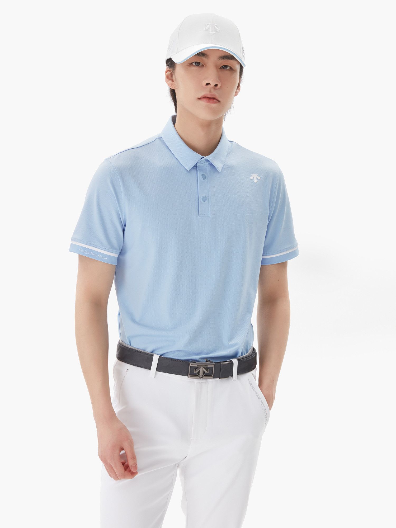 【 DESCENTE 】男款高爾夫POLO衫 淺藍