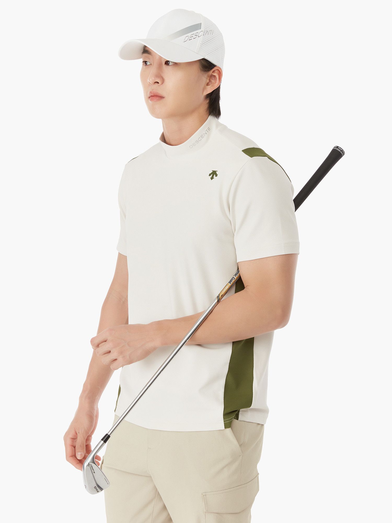 【 DESCENTE 】男款高領短袖上衣 米白