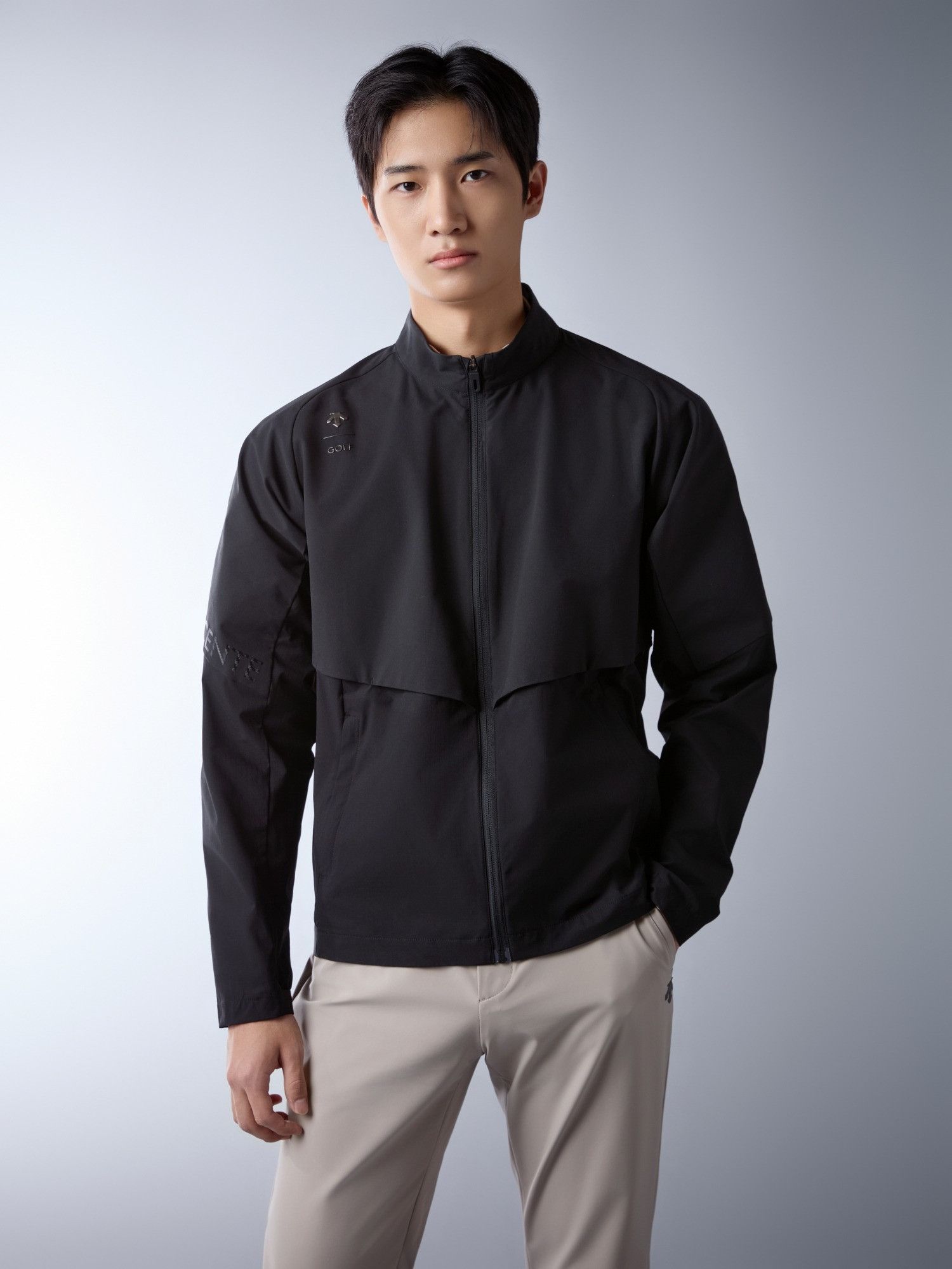 【 DESCENTE 】男款拼接防風外套 黑