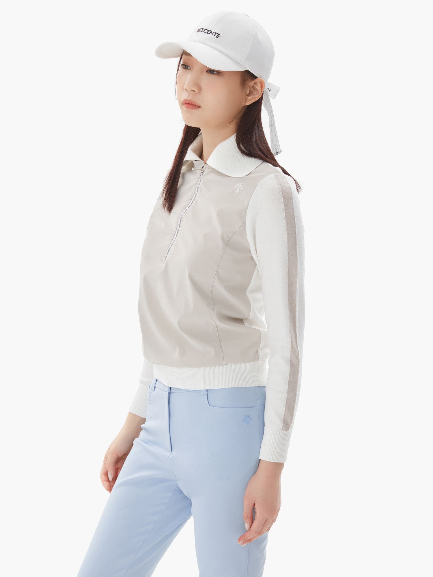 【 DESCENTE 】女款拼接針織上衣 卡其