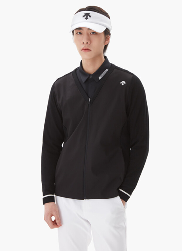 【 DESCENTE 100.105現貨 】男款針織拼接開衫 黑